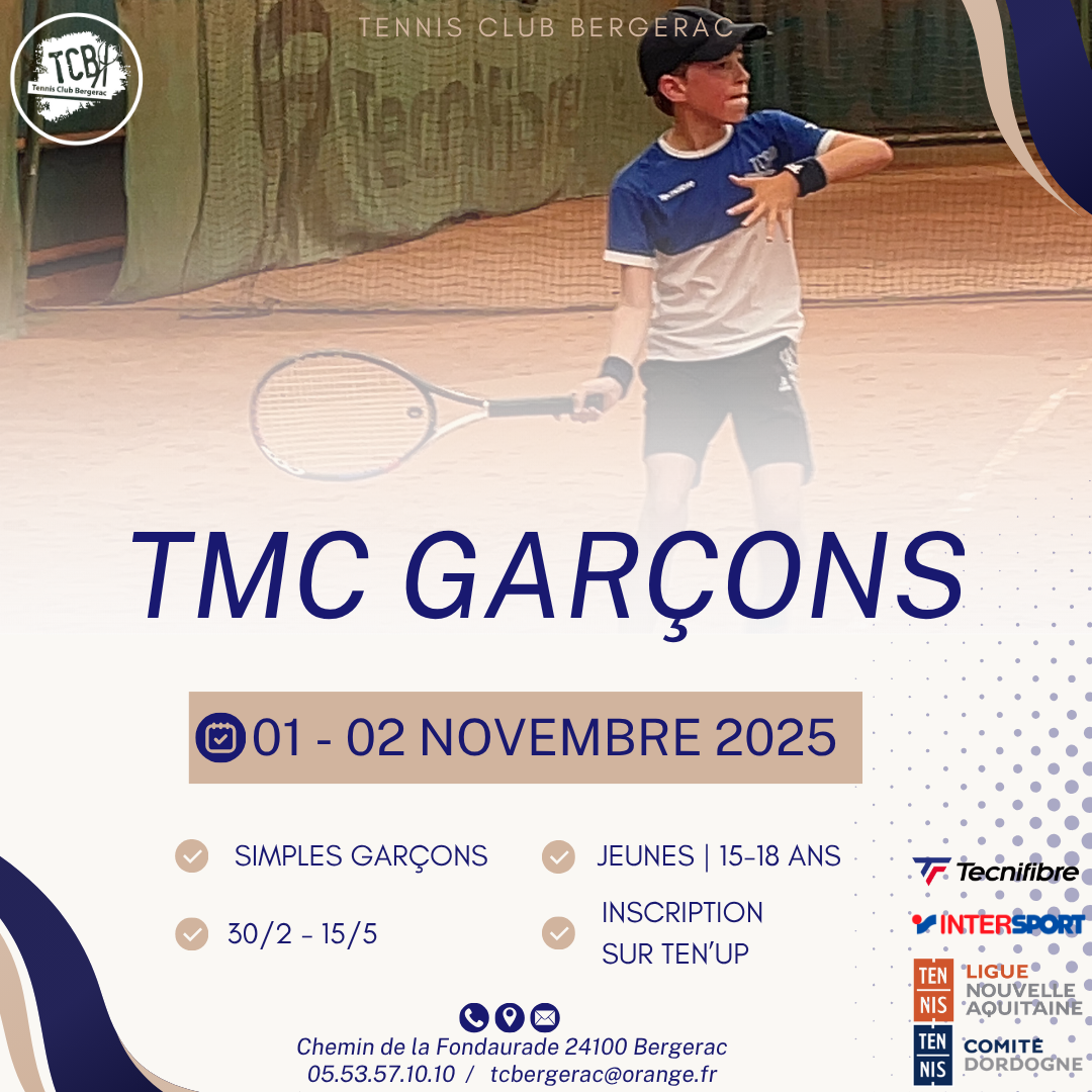 23 octobre - 2 novembre TOURNOIS DE LA TOUSSAINT TCB Chem. de la Fondaurade, Bergerac, ., France TOURNOIS INSCRIPTIONS PAR TENUP